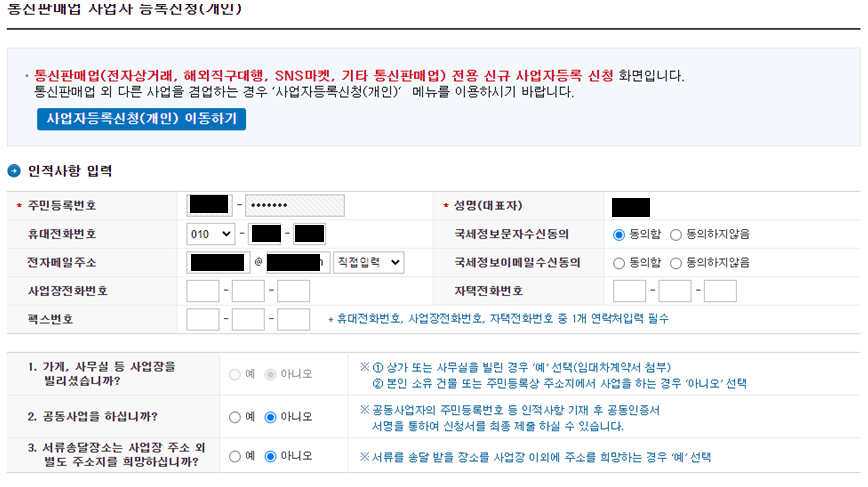 사업자등록이 완료되었다는 문자가 오면 다음 단계인 통신판매업을 신청해야 한다.