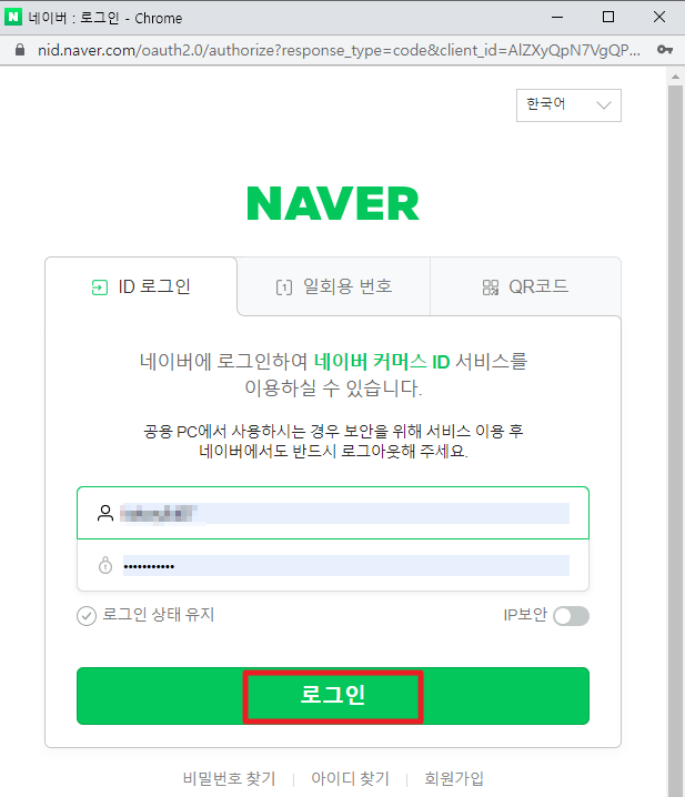 아이디를 입력하고 로그인을 한다.