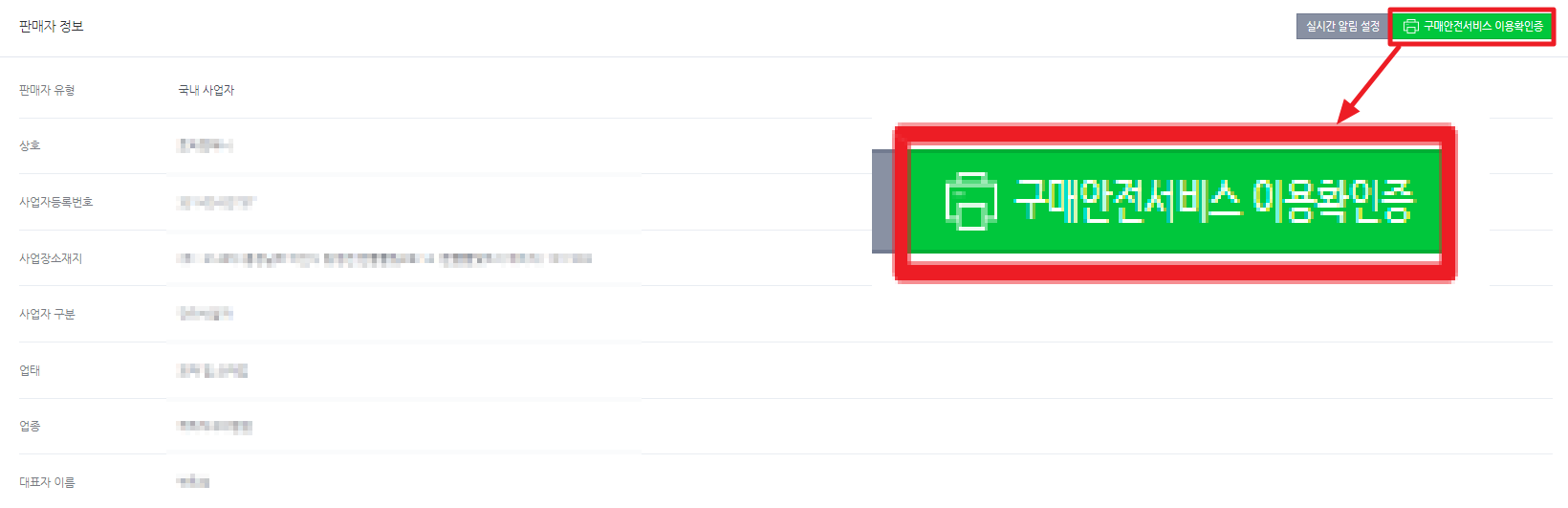 우측 상단의 구매안전서비스 이용확인증 버튼을 클릭한다.
